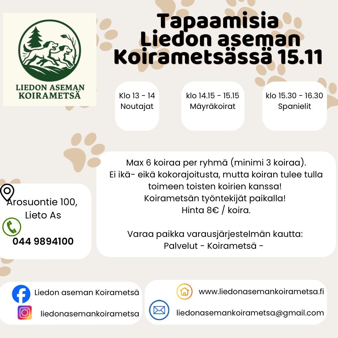 Liedon asemalla, lyhyen ja nopean ajomatkan päässä vaikka Turusta ja Raisiosta sijaitsee luonnonmukainen reilun kahden hehtaarin koirametsä.