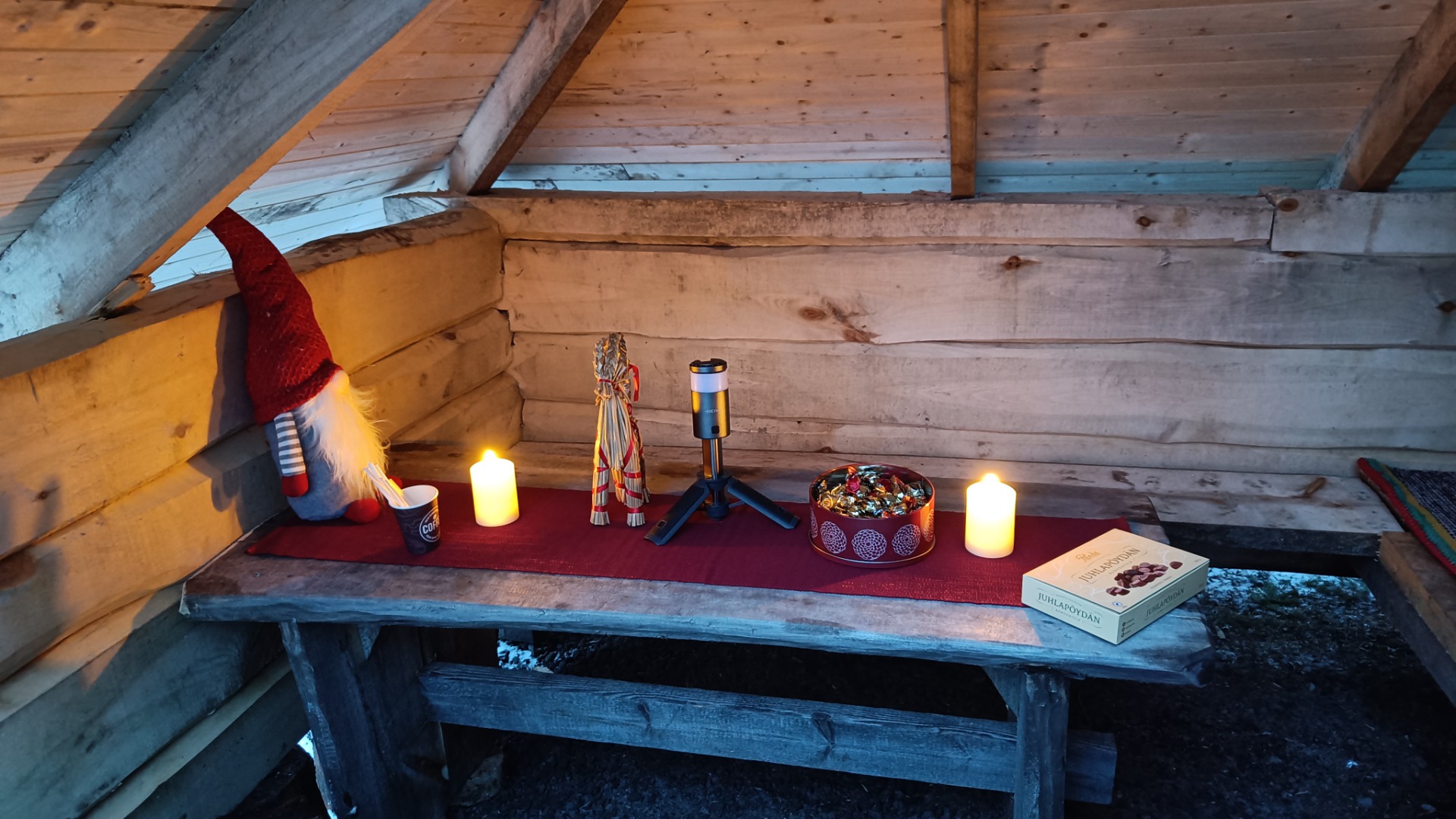 Tunnelmallinen käsinveistetty hirsilaavu on valmistunut Koirametsän Grillikalliolle. Ota mukaan glögiä termariin ja nauti eväistä ja ajasta koiran ja ystävien kanssa.